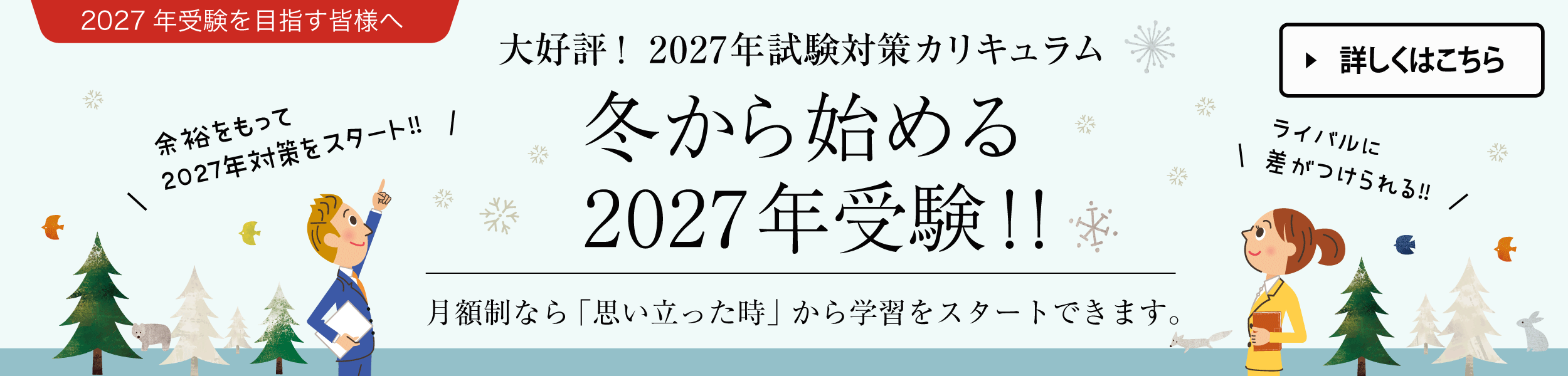 月額制は、最低10ヶ月の継続が可能な方に限定した「割引制度」です。試験まで10ヵ月を切っている場合は、試験後も10ヵ月間の支払いは継続されます。ただし11月の試験発表で合格されていた場合は、「合格返金制度」が適用されますので、試験月の翌月(8月)〜合格発表月(11月)までの4ヵ月の支払い額は全て返金させていただきます。