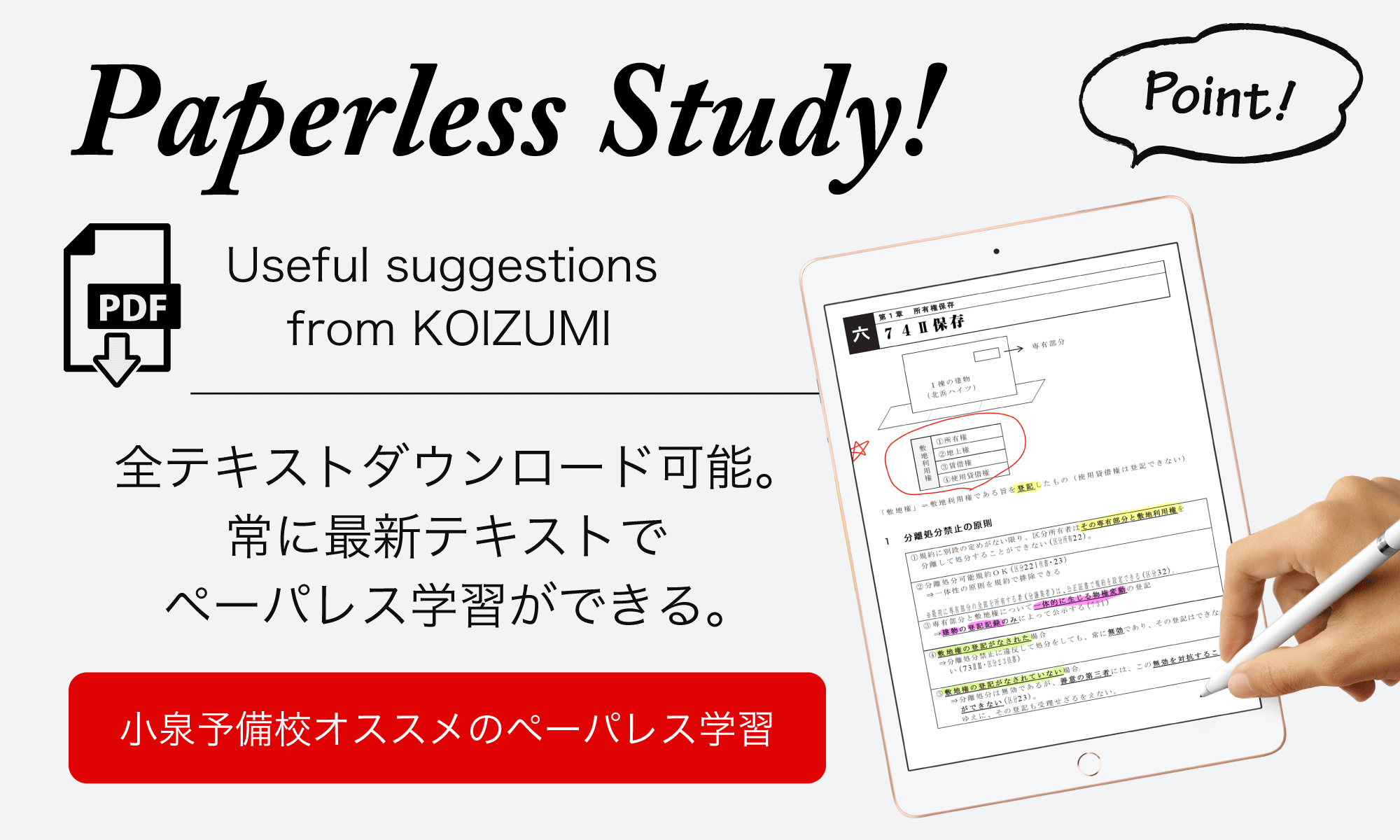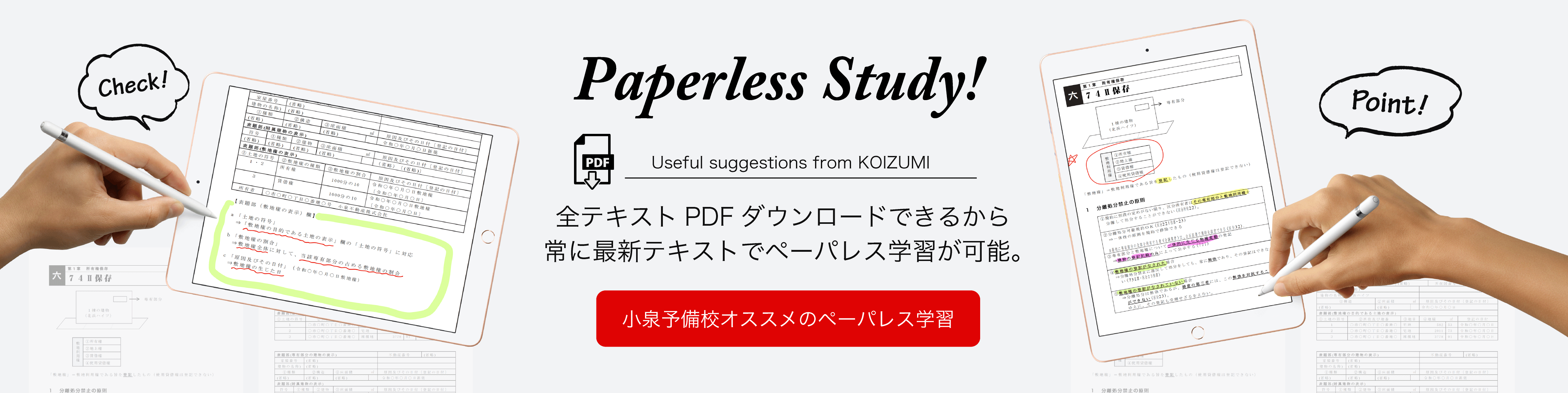 小泉司法書士予備校の最新トピックスを掲載。各種講座・書籍に関連する補正情報は、こちらのページにてご確認いただけます。